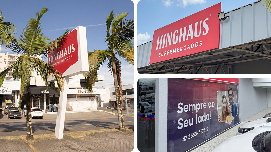 No caso do Supermercado Hinghaus, além da execução de diversos itens de comunicação visual, também participamos do processo de revitalização da marca, tornando sua identidade mais moderna, forte e alinhada com o momento atual da empresa.