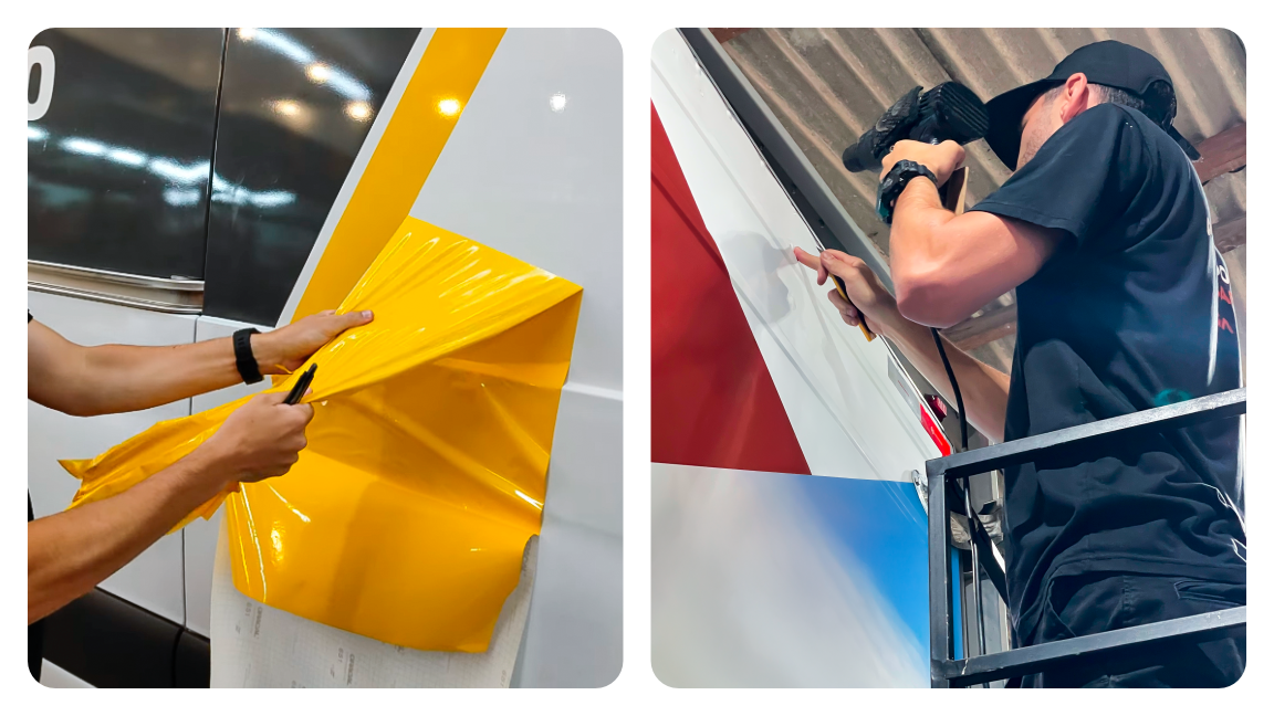 Este é o diferencial da DGA Comunicação Visual. Uma aplicação feita por uma equipe altamente capacitada garante que não haja bolhas, rugas ou descolamentos prematuros. Da mesma forma, a remoção precisa de técnica para preservar o verniz e evitar resíduos.