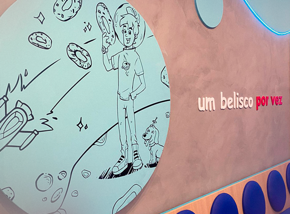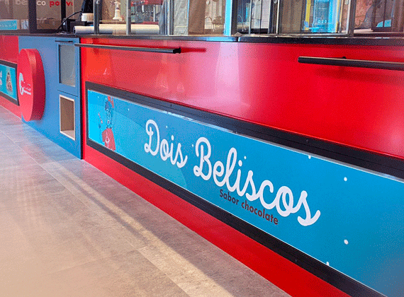 Na área externa, onde está localizada a fachada do estabelecimento, trabalhamos com uma estrutura metálica com curvas, revestimento em ACM, acrílico, iluminação em LED e LEDLine. Já na parte interna, você irá observar a presença de adesivos impressos e de recorte, letras caixa em acrílico, painel em ACM com iluminação LED e LEDLine.