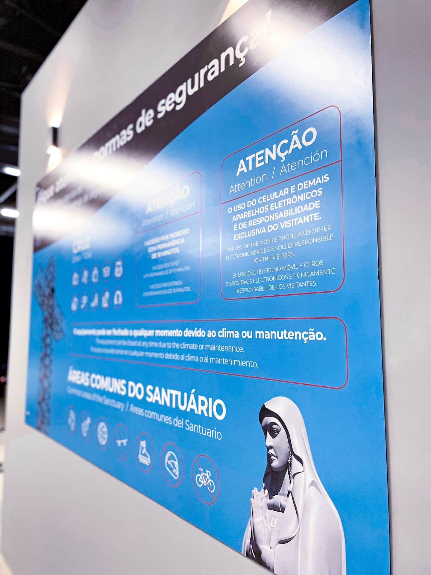No caso do Santuário Nossa Senhora de Lourdes e do Louvor, as placas foram instaladas em diversos pontos do local, como na entrada, nos corredores e nas salas de atendimento. Dessa forma, os visitantes podem se orientar facilmente e encontrar o que precisam de forma rápida e eficiente.