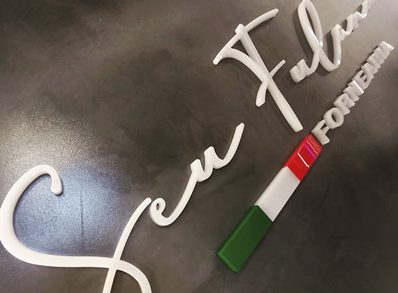 Letreiro produzido em acrílico 10mm, proporcionando um belo visual para a marca.