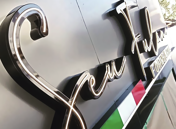 O projeto de comunicação visual desenvolvido para o Seu Fulano Fornearia, em Ituporanga, contou com letras caixas produzidas com base em ACM e acrílico, o que cria um visual tridimensional para o logo e proporciona mais destaque na fachada do estabelecimento.